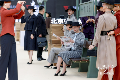 置身于一九零七站台,模特们或是手持望远镜眺望远方,或是坐在长椅上阅读报纸,或是手拎行李箱行色匆匆。她们仿佛穿越时光的旅人,正在盼望下一段动人心弦的旅行。无龄榜样与JEFEN吉芬团队用精巧编排与造型呈现让时装讲述起一段暗流涌动的旅途故事,而JEFEN吉芬2025秋冬系列的时装作品则成为了将过去与当下相联结的锚点。本季JEFEN吉芬从时装史中汲取灵感,以现代设计语言重新诠释经典,融复古格调与都会风范于一体,通过“奢、雅、智、美”四大维度,为不同世代的精英女性打造彰显自我、释放魅力的时装形象。