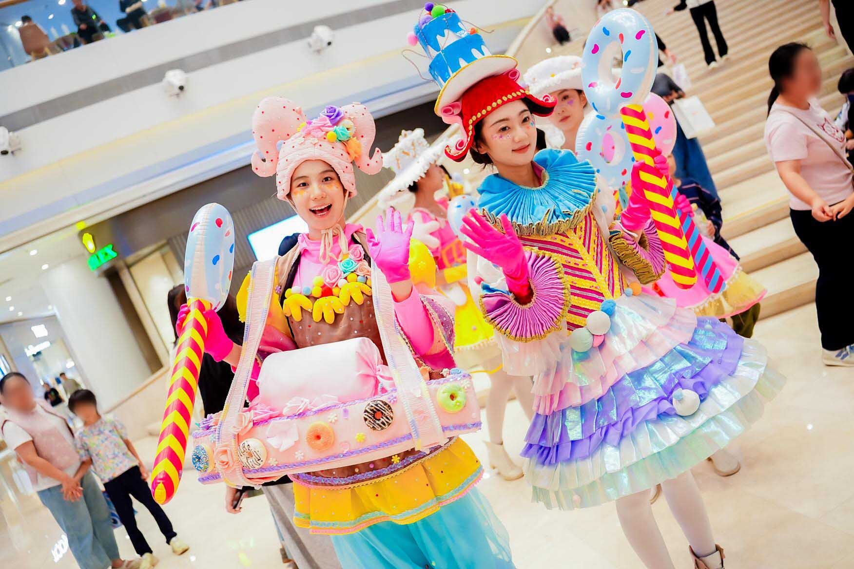 在庆典的热烈氛围下,大连恒隆广场亦化身为一个奇幻舞台,每天上演着无与伦比的视听盛宴,将庆典推向一个又一个高潮。巡游派礼甜蜜无限,演员身着彩色的华丽服饰,装扮得仿佛来自童话世界的糖果精灵,在场内穿梭派发甜蜜好礼;街舞表演营造活力现场,超燃舞团用劲爆的舞姿,搭配动感的音乐,呈现精彩绝伦的演出;外籍乐队带来深情演绎,美妙动人的旋律、灵动悠扬的歌声在场内飘扬,让大家在音乐的世界中尽情享受。