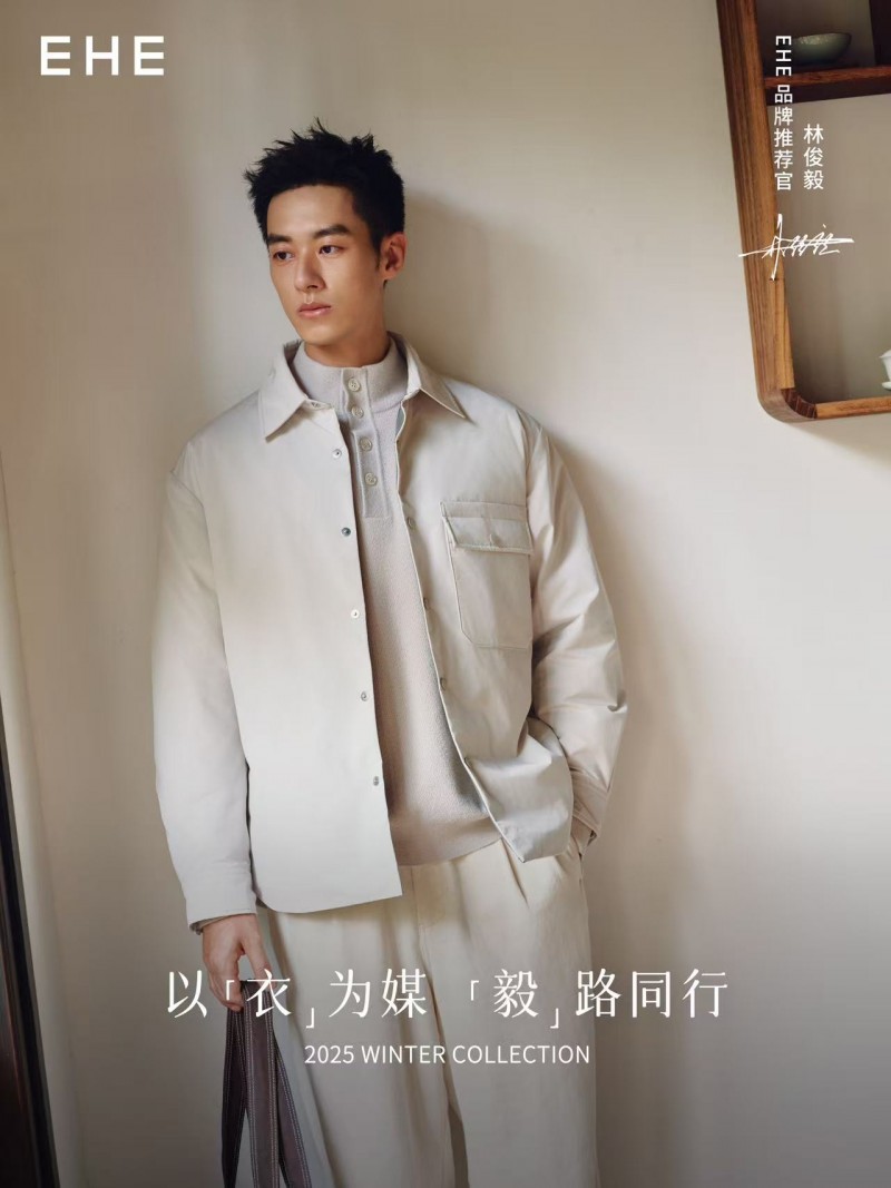 作为深耕男装行业的品牌,EHE致力于探索中式韵味与现代时髦的表达可能性,坚持选用高品质的原材纤维,注重干净流畅的廓形设计,呈现经典松弛的优雅状态,自在且精致,传递低调、舒适、自信的品牌故事。这份对品质的执着与对初心的坚守,恰与林俊毅的职业轨迹形成深刻共鸣。
