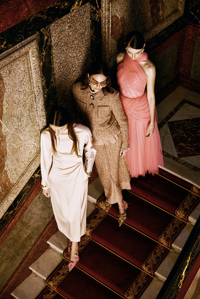 极致的工艺与细节,将花卉的泰然沉静、细腻气质以“自然物性”的方式呈现,自然花卉本身的呼吸,自有节律,轻盈地平衡着其经典建筑轮廓,带来随环境变化轻重缓急的流动感。细微处细视,从灵感手稿到成品,历经繁复臻选顶级面料、以及凝萃精巧手工技艺,剥离工艺冗余带来的厚重,纯粹捕捉自然之物——水的肌理律动、光影的流转与色彩的呼吸,让面料成为自然诗意的载体。