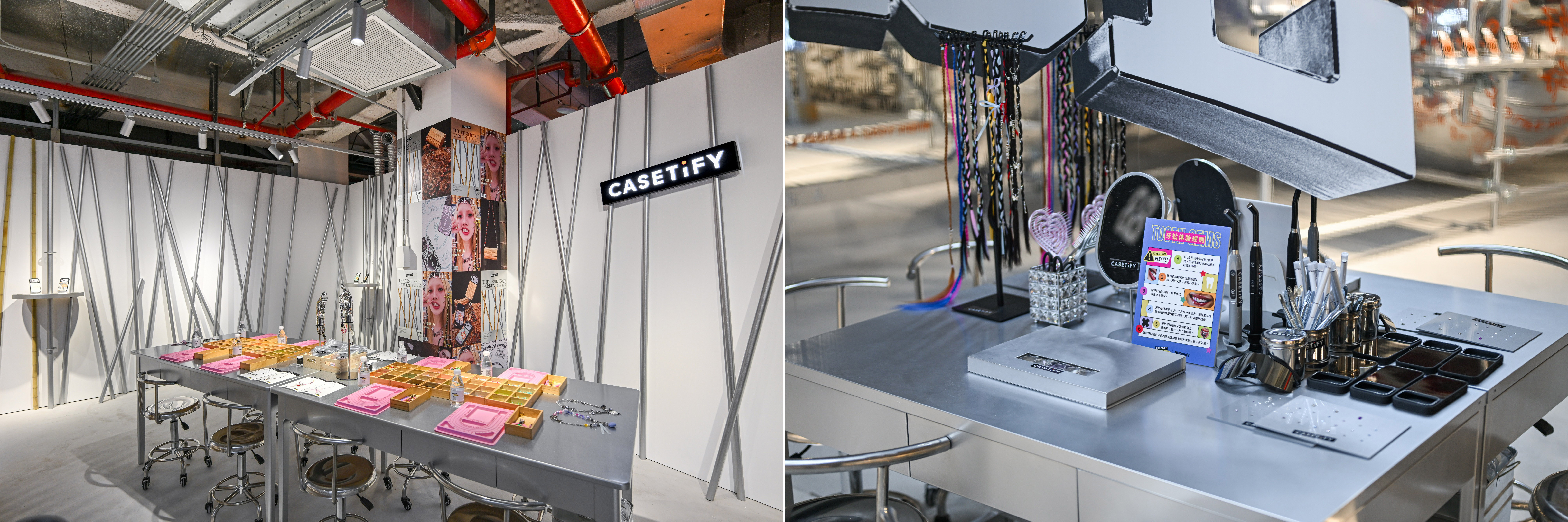 为进一步强化与粉丝的互动, CASETiFY 于快闪空间内特别打造 C 门造型工坊,邀请大家以联名系列为灵感,亲手打造独一无二的个性化配件,诠释 CASETiFY “创想由你”的个性化理念。现场有 DIY 装点牙钻或彩辫挂饰及创想手工体验,鼓励大家通过对 CASETiFY 产品的再造或自选组合搭配,组成具有个人专属风格的多用途项链配饰。