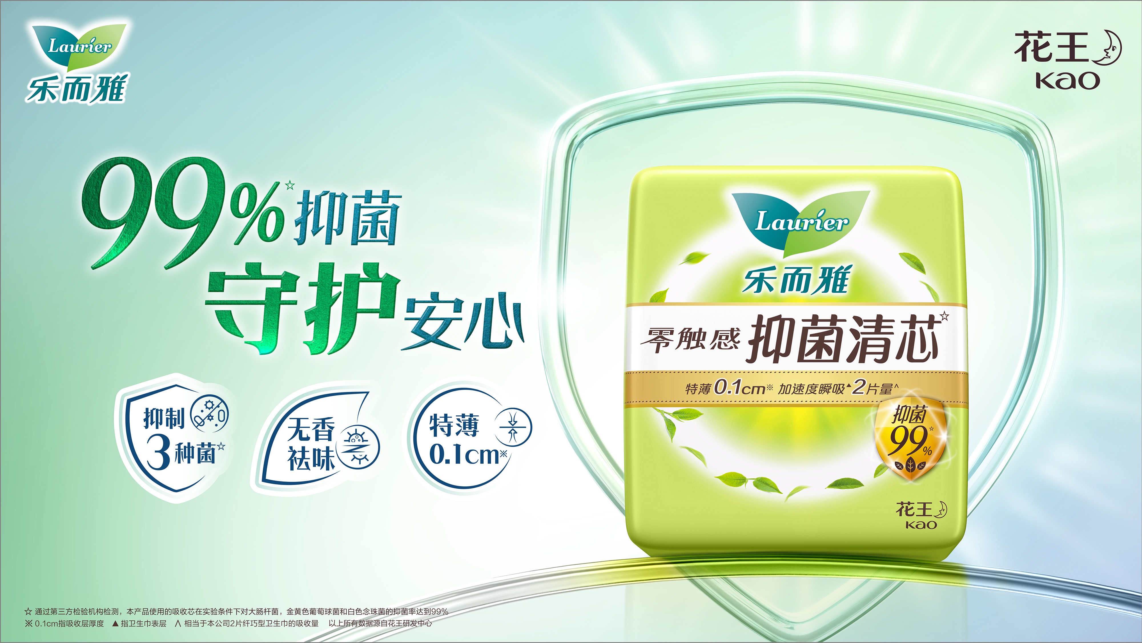 随着时代与生活方式的变化,中国女性对经期健康提出了更高要求。乐而雅品牌研发出新抑菌系列卫生巾,含Hygiene+洁净因子专利抑菌技术,对三类常见菌的抑菌率达99%,同时具有“三重祛味”效果,解决消费者的日常顾虑。