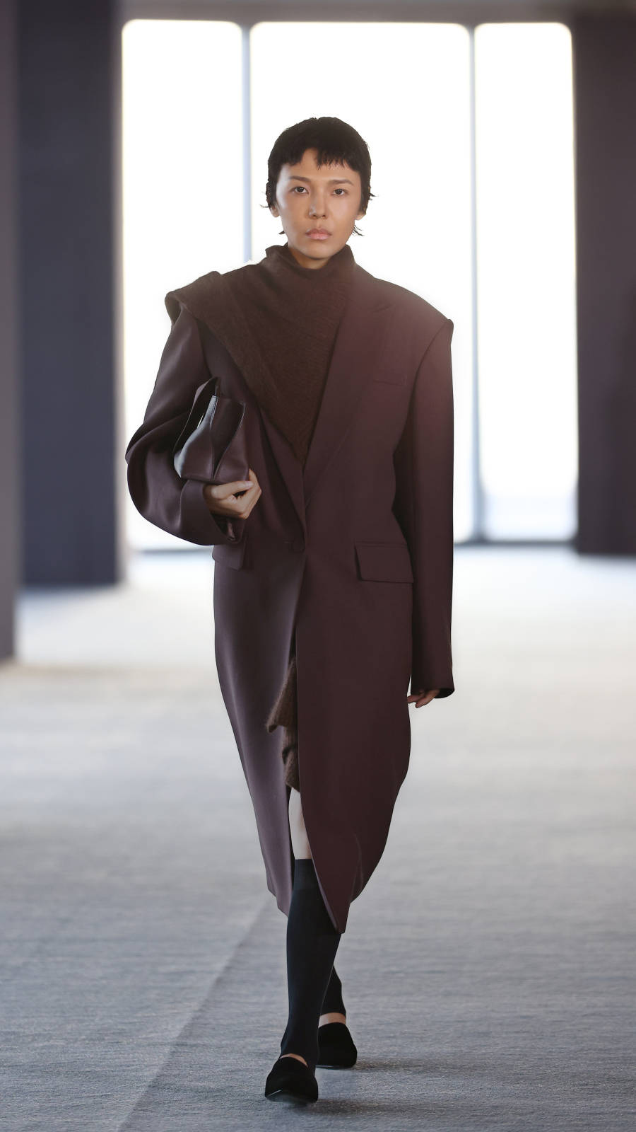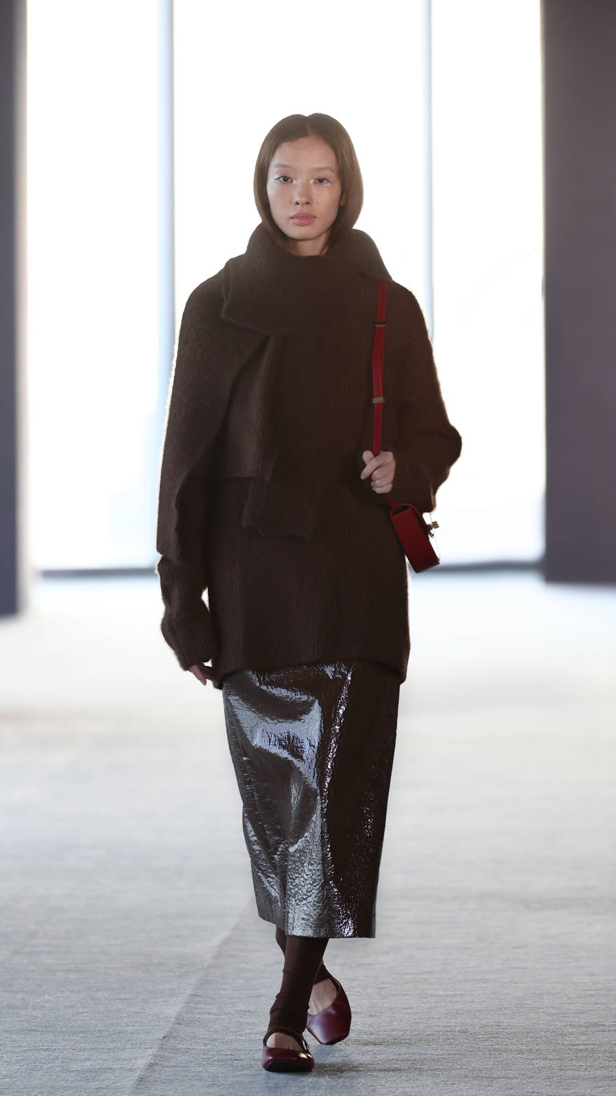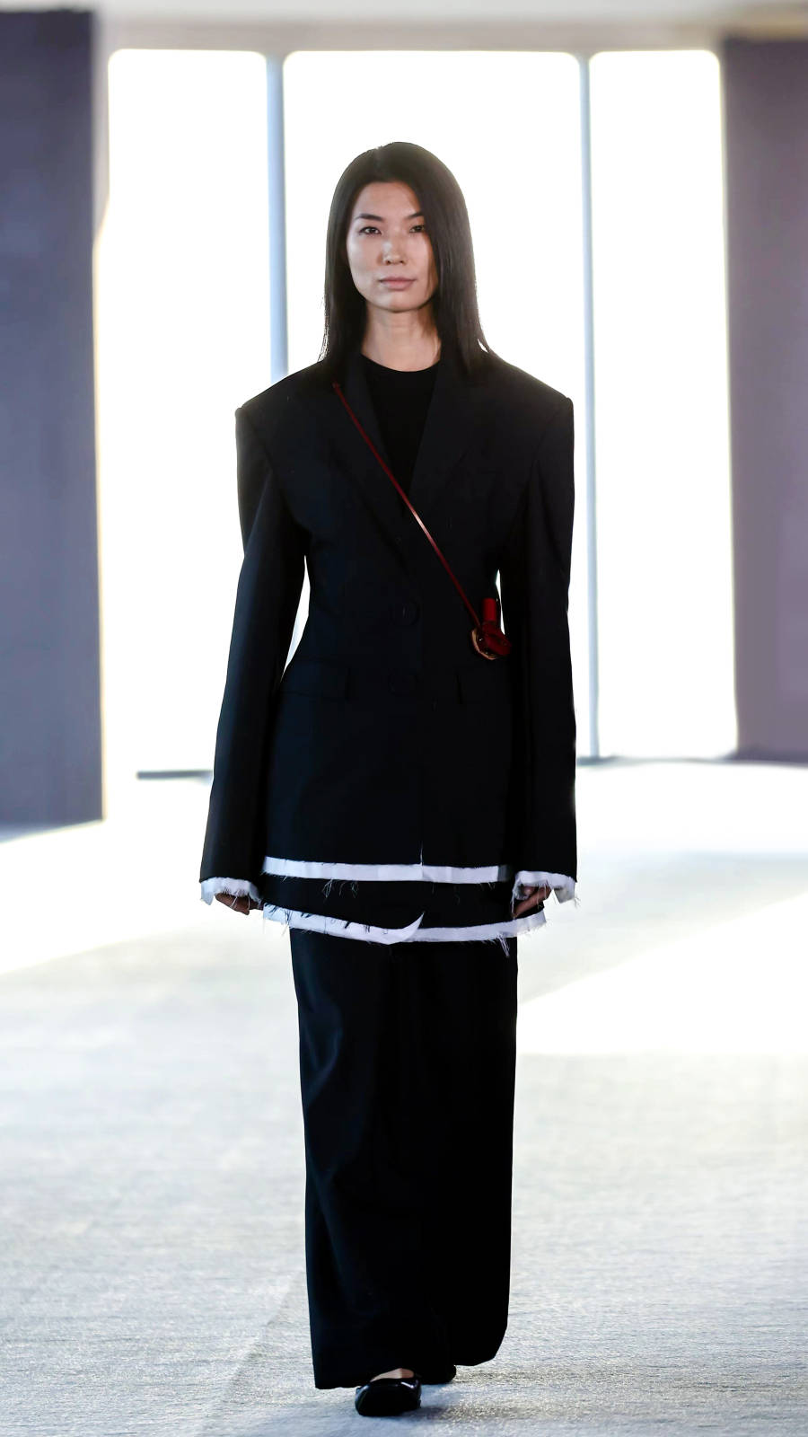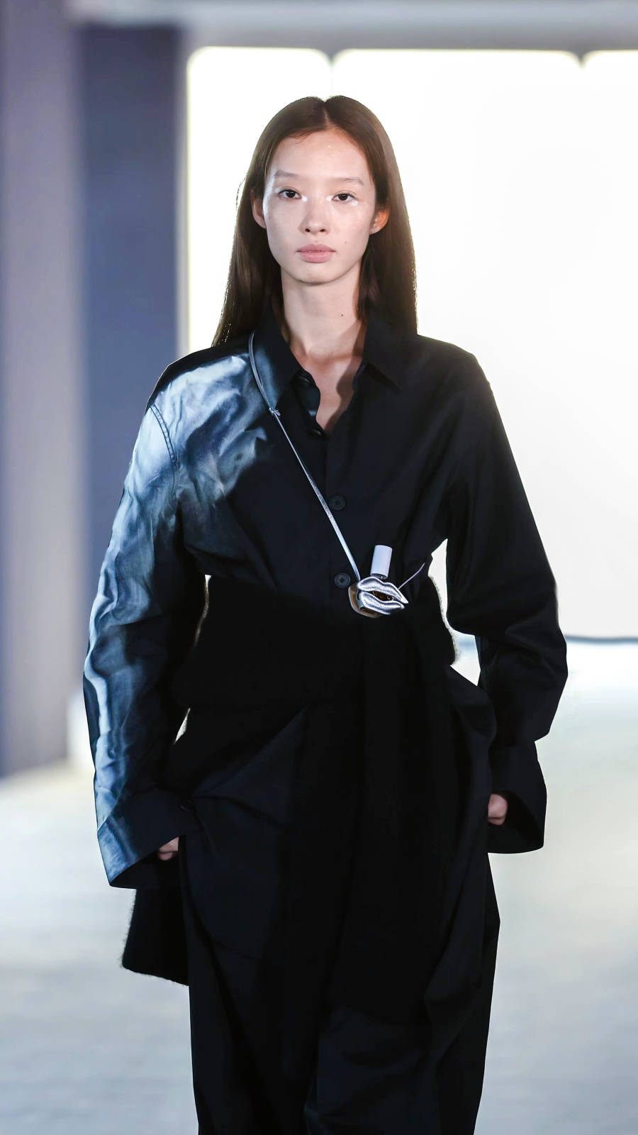 JUDYHUA延续“软雕塑”艺术基因,通过立体斜裁、不对称剪裁与解构手法,打破服装的二维边界,塑造出极具空间感的流动廓形。这些廓形不只是物理性的,更是心理性的——我们存放记忆、情感与经历的容器。