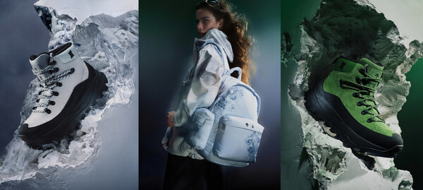 当代艺术家 Daniel Arsham 以"未来遗迹"理念闻名,其创作常以时间为线索,在艺术与设计的交汇中探讨物质与记忆的关系。本次合作是他首次将这一理念延伸至专业运动装备领域。与迪桑特的共创中,Daniel Arsham 以冬日山野为灵感,将冰雪、森林与岩层的自然肌理转化为艺术语言;品牌则以精工造艺的设计理念与专业科技予回应艺术构想,使自然的力量与时间的痕迹在装备之上具象呈现,构筑出兼具功能与美学张力的独特表达。