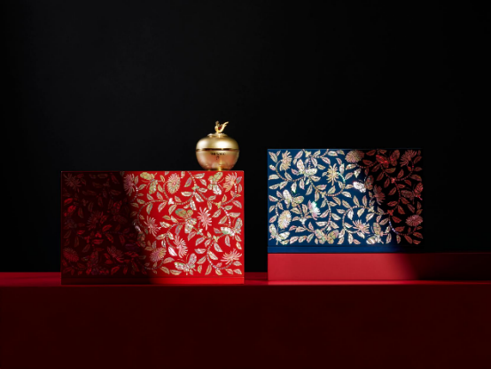 一款礼赠以经典菊花缠枝纹样为灵感,将传统螺钿漆艺与现代设计语言相融合,打造既承东方底蕴、又现当代奢美的珍贵礼遇。礼盒光泽随角度折射、变幻,将凝颜系列所追求的恒美之力具象呈现,完美展示了THE WHOO后植根于韩国宫廷艺术美学的品牌哲学,此设计不仅传递了对韩国宫廷文化的深刻敬意,更将“时间雕琢之美”升华为可触可感的艺术珍品。