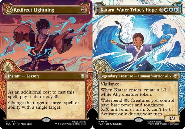 元素牌框将《降世神通:最后的气宗》的美学与万智牌进行了完美结合,以补充包添趣的方式展示了动画中的人气角色和时刻。依据元素的不同,文本框内有不同的蚀刻纹理。