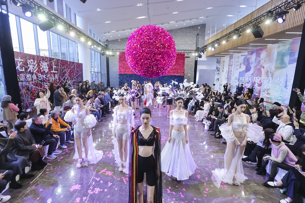 此次跨界打造的艺术秀,赫本西施旗下二十余套独一无二的秀场定制款内衣,亦有幸成为叙事的主角。其置身艺术氛围中的走秀呈现,极大地扩宽了商业展示和艺术呈现的想象空间。当秀场步入高潮,古原先生的标志性花彩装置瞬间爆破,万千彩色纸屑如内在生命力般温柔而坚定地喷薄而出,将身着艺术高定的模特轻轻包裹,这一幕在给现场所有人视觉与审美双重震撼的同时,也让赫本西施“向内生长,向外绽放”的品牌理念有了一次完美的阐释和演绎。