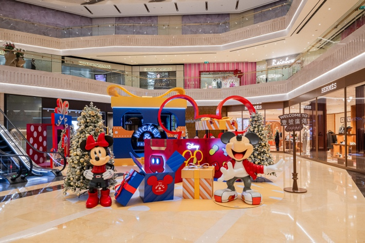 壹号广塲内外共设置九大沉浸式打卡点,以充满玩趣、贴近Z世代潮流的造型与姿态,生动展现深受喜爱的一众迪士尼角色。亮点包括高达6米的巨型米奇充气装置,以及伫立于海滨、自拍中的米奇与好友艺术装饰。圣诞魔法更遍布商场內,顾客可于室内中庭探索一系列玩味装置:从令人惊叹的3米高米奇比心雕塑、迷人的米奇秋千到巨型礼物盒,处处皆是温馨节日照片的完美背景。