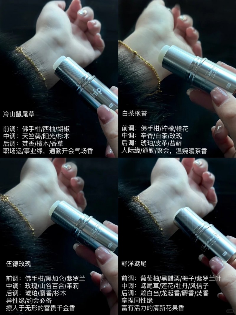 hfp的香膏从留香到香型质感都很能打,每支香味都能找到合适的场景——