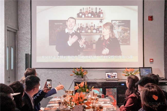 晚宴现场,法国国家干邑行业管理局两位代表通过视频远程送来祝福,传递了对干邑在华发展的重视与期待。他们表示,中国作为干邑全球关键市场,消费者对“干邑时刻”的珍视,正是对产区工艺与文化价值的认可与致敬。法国国家干邑行业管理局知识产权及地理标志保护总监艾曼丁·迪蒂约尔女士(Amandine DUTHILLEUL)向现场嘉宾致以亲切问候,“我谨代表整个干邑行业,向中国相关部门、各个机构合作伙伴以及今晚在座的业界同仁诚挚致谢,感谢大家的投入与信任。正因有各位的努力,才能确保每一位中国消费者品尝到的都是纯正而获得严格保护的干邑美酒。”同样的,法国国家干邑行业管理局公共与国际事务总监莱奥纳尔·拉拉圭先生(Lionel LALAGÜE)肯定了干邑地理标志在深化中法经贸合作、推动两国文化互鉴过程中所发挥的积极作用,他表示:“在世界形势不断演变的背景之下,我们欣慰于能够依靠以相互信任和尊重为基础的持久伙伴关系。法国总统近日对中国的访问,见证了双方巩固在商业、外交与文化领域合作的意愿。”