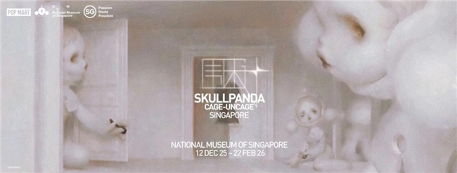 2025年12月12日至2026年2月22日期间,泡泡玛特携手新加坡旅游局与新加坡国家博物馆,跨界呈献SKULLPANDA围困计主题展。此次展览以艺术家熊喵的原创 IP 角色 SKULLPANDA 为核心元素,打造多组大型艺术互动装置,同时重构日常生活中的钥匙、门锁等经典符号,赋予寻常物件全新的艺术隐喻,引导观众深入思考束缚与自由、选择与自我发现的深刻命题。