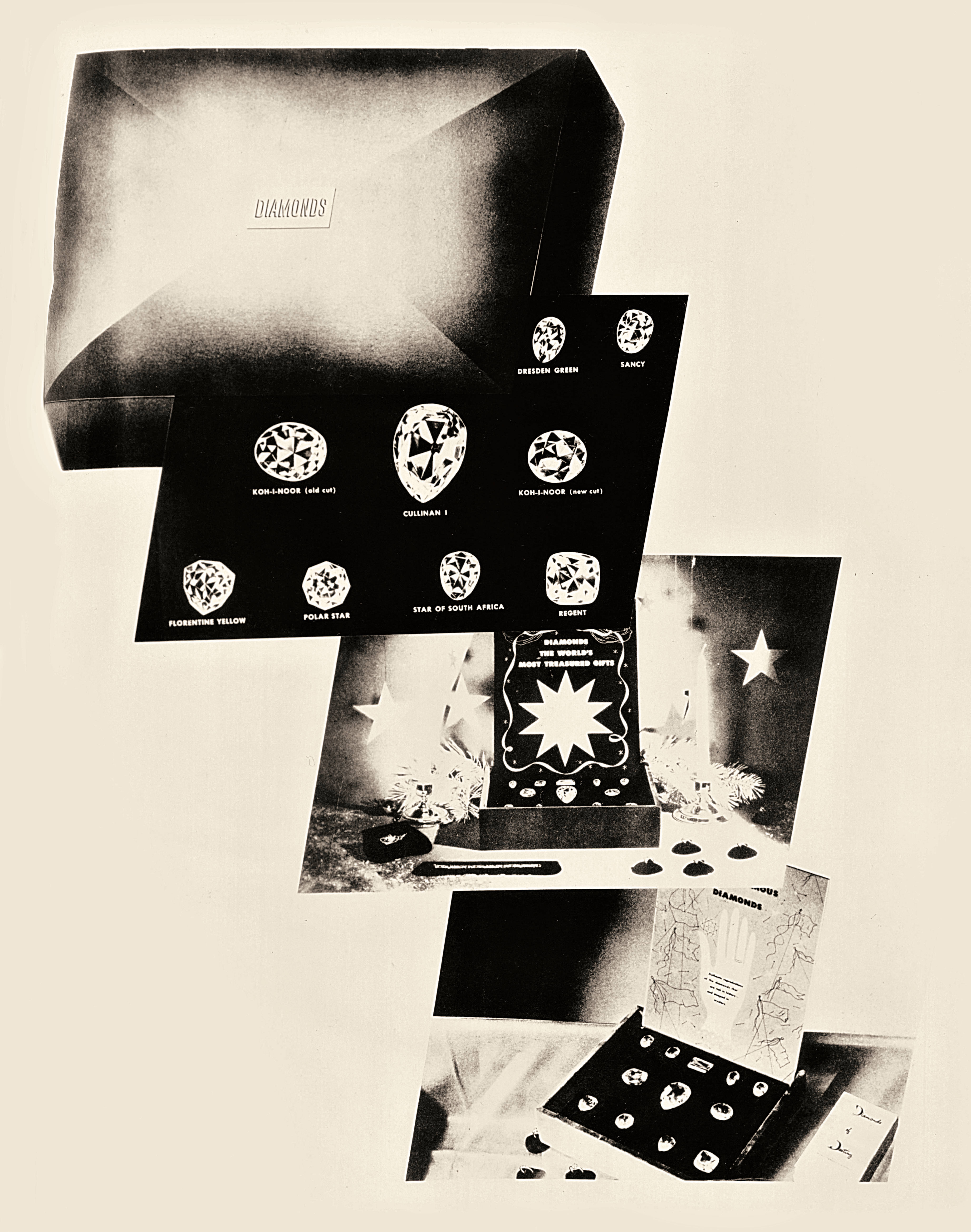 1939年,戴比尔斯面向珠宝商的广告,展示钻石珠宝的最佳陈列方式