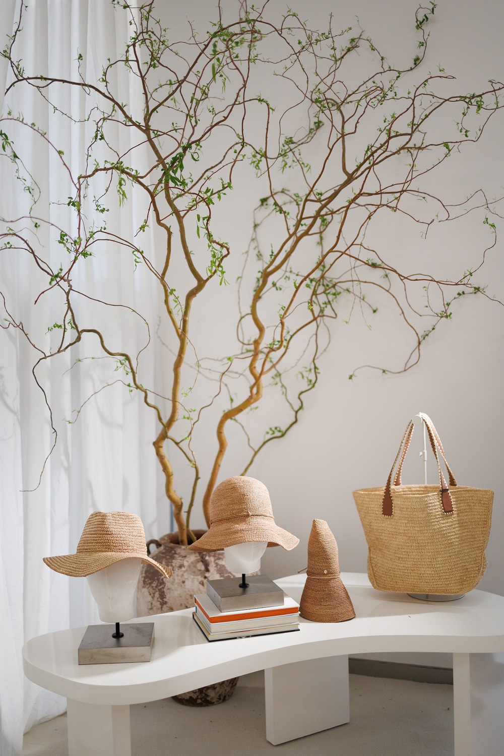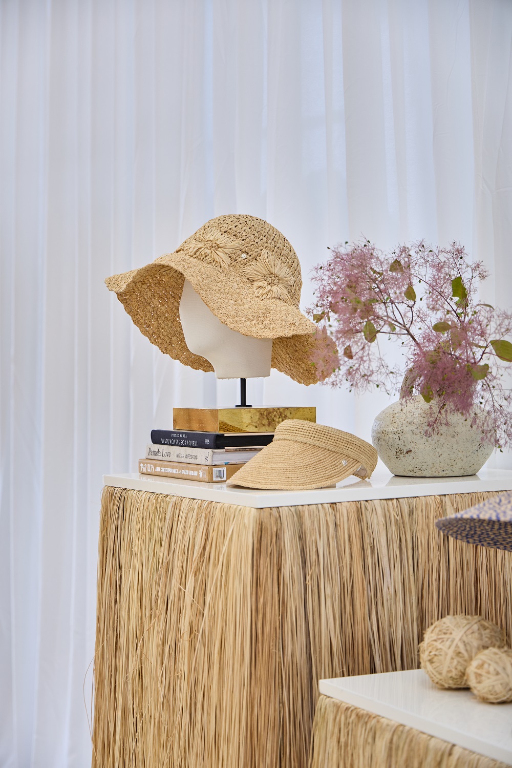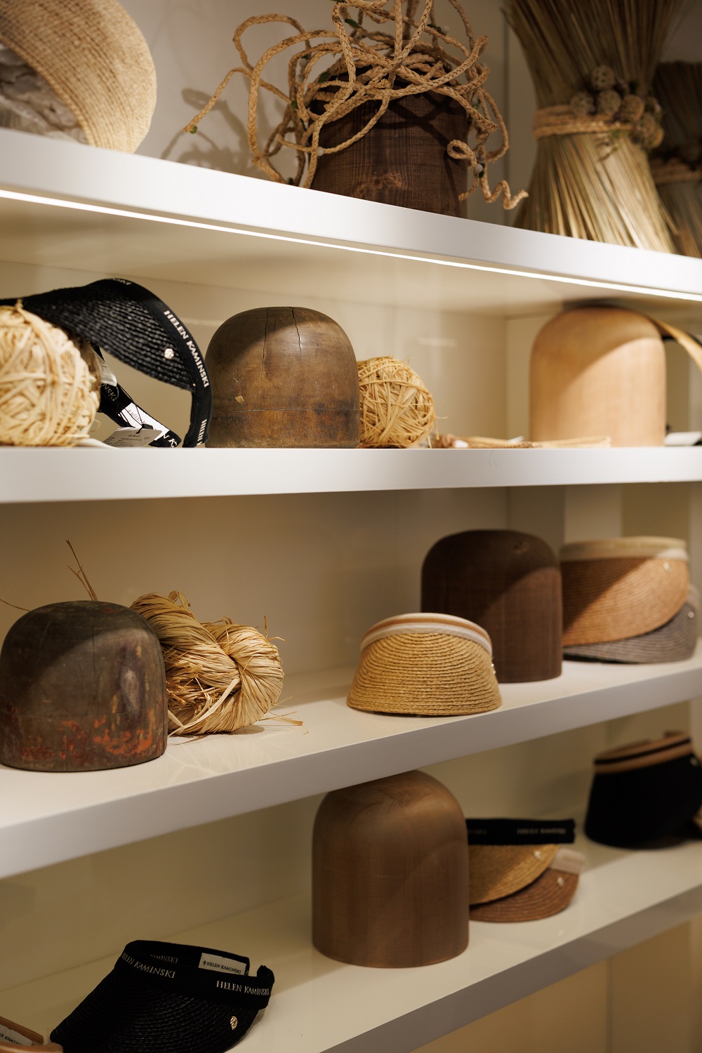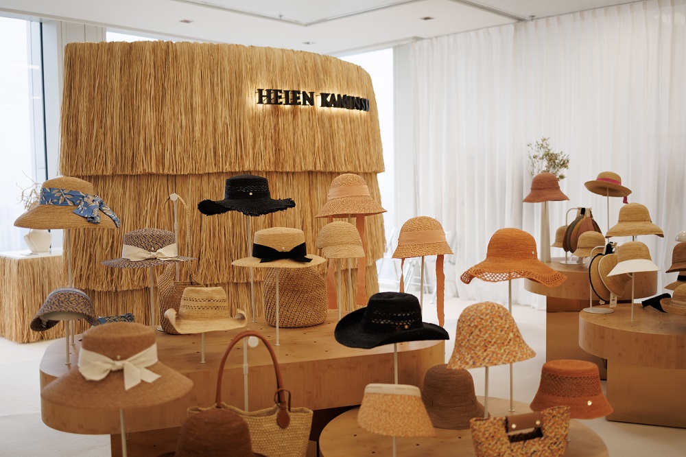 伴随此次亮相,Helen Kaminski 特别打造了其在中国内地的首个品牌展示空间。空间延续品牌全球统一的设计理念,以标志性的天然拉菲草为核心元素。由拉菲草编织而成的艺术装置点缀于墙面与陈列之间,自然的纹理与柔和的光线相映,营造出沉浸式的情境氛围,引领来访者邂逅一场品牌源于自然的美学之旅。